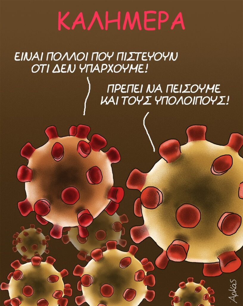 Ο γνωστός σκιτσογράφος Αρκάς με τα καυστικά σκίτσα, αυτή τη φορά για τον κορονοϊό, που ταλανίζει τον κόσμο, μας δίνει τροφή για σκέψη!