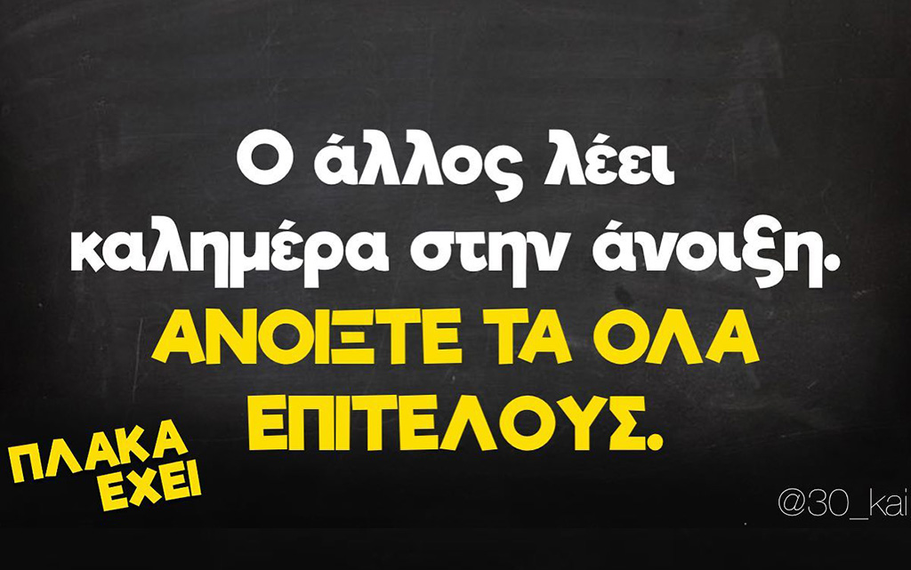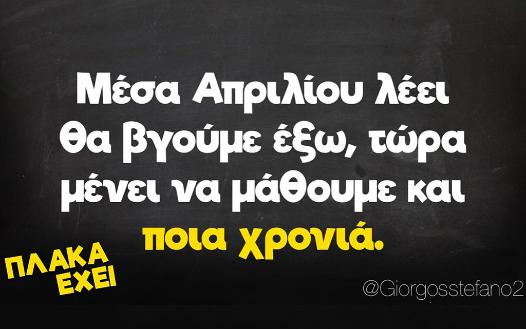 Αυτή η ανάγκη να ξορκίσουμε το άγχος για όσα συμβαίνουν οδήγησε κάποια –ευρηματικά ομολογουμένως- μυαλά να κατακλύσουν τα social media με memes, φωτογραφίες και βίντεο της επικαιρότητας, που μας κάνουν να χαμογελάμε.