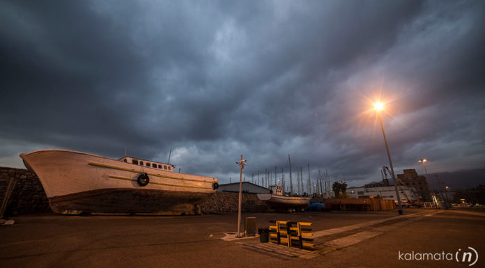 Σημείο του λιμανιού Καλαμάτας λίγο πριν νυχτώσει.