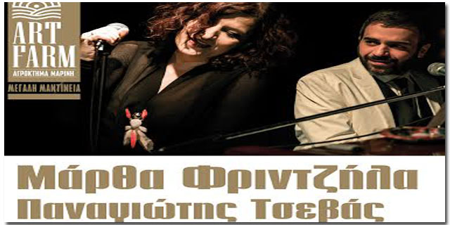 Μια ξεχωριστή συναυλία με τη Μάρθα Φριντζήλα και τον Παναγιώτη Τσεβά θα πραγματοποιηθεί στον όμορφο και ειδυλλιακό χώρο του Αγροκτήματος Μαρίνη Art Farm στη Μέγάλη Μαντίνεια, το Σάββατο 16 Ιουλίου, στις 21:30, "ΡεΖιτάΛ "Σέλφι - 20 χρόνια επιτυχίες (άλλων)".