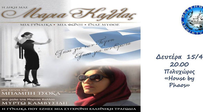 Η Μεσσηνιακή Αμφικτυονία και η "Φάος" Κοιν.Σ.Επ. μάς προσκαλούν στην προβολή του ντοκιμαντέρ "Η δική μας Μαρία Κάλλας", τη Δευτέρα 15 Απριλίου και ώρα...