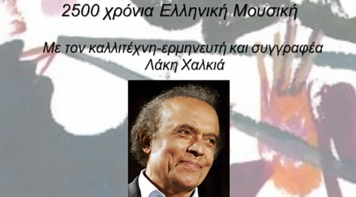 Στο πλαίσιο των εκδηλώσεων του Εργαστηρίου Διαχρονικής Μελέτης της Ελληνικής Γλώσσας και Γραμματείας «Νίκος Καρούζος» για το ακαδημαϊκό έτος 2018-2019, την Τετάρτη, 12 Δεκεμβρίου 2018 και ώρα 19:00 θα πραγματοποιηθεί ομιλία του κου Λάκη Χαλκιά, καλλιτέχνη-ερμηνευτή και συγγραφέα, με θέμα: «2500 χρόνια Ελληνική Μουσική».