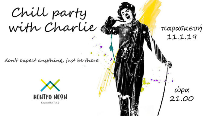 Πάρτυ διοργανώνει το Κέντρο Νέων Καλαμάτας στον χώρο του την Παρασκευή 11 Ιανουαρίου 2019 στις 21:00, με σκοπό τα μέλη του (και όχι μόνο) να μαζευτούν, να γνωριστούν, να ακούσουν ωραία μουσική, να χορέψουν και να απολαύσουν την "παρουσία" του Charlie Chaplin!