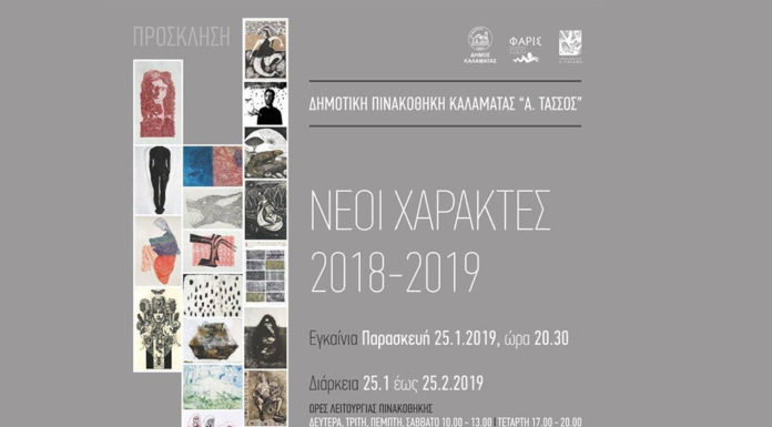 Έκθεση χαρακτικής με τίτλο "Νέοι Χαράκτες 2018-2019" θα πραγματοποιηθεί στην Καλαμάτα, στη Δημοτική Πινακοθήκη Καλαμάτας "Α.Τάσσος", από τις 25 Ιανουαρίου έως τις 25 Φεβρουαρίου 2019.