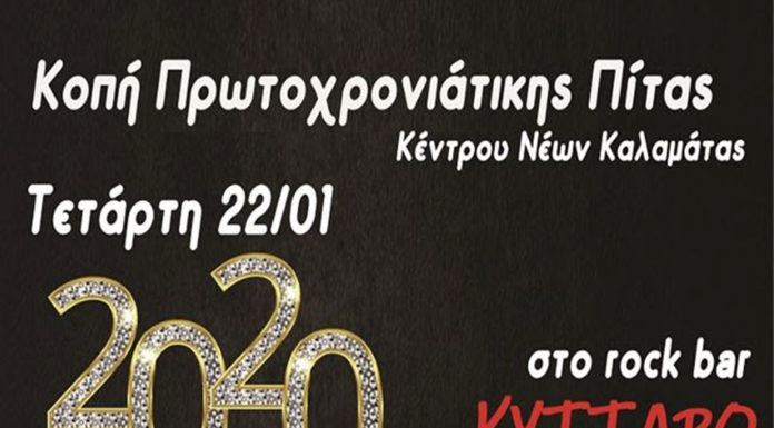 Την κοπής της Πρωτοχρονιάτικης πίτας του θα πραγματοποιήσει το Κέντρο Νέων Καλαμάτας, την Τετάρτη 22 Ιανουαρίου 2020, στις 21.00 στο Κύτταρο Rock Bar.