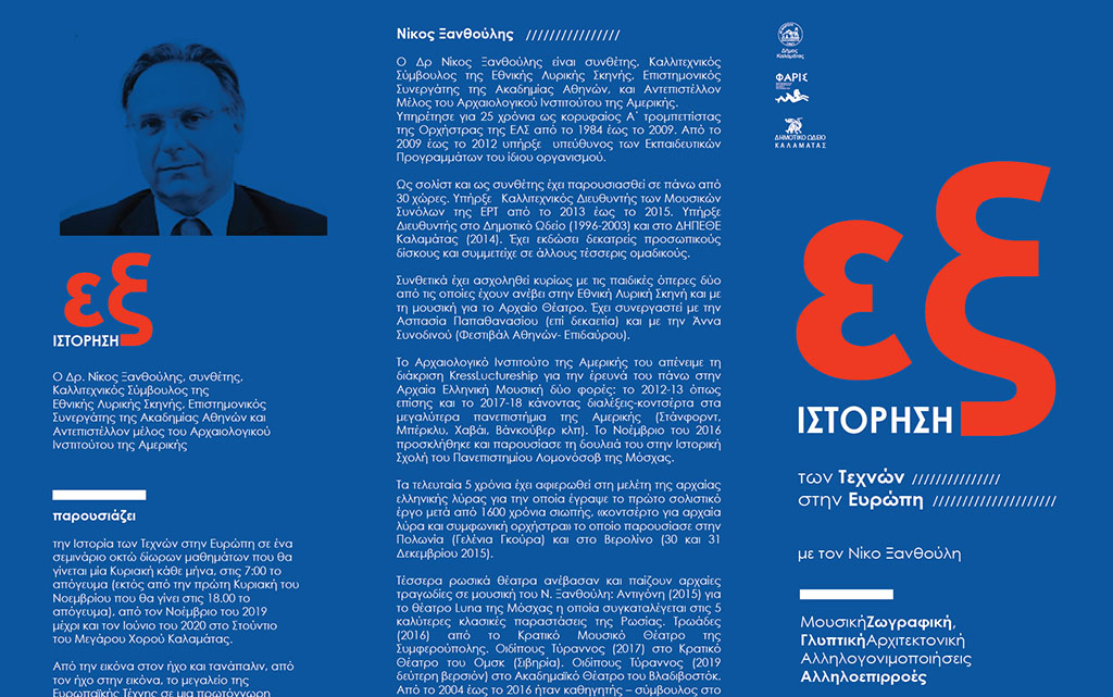 Ο κύκλος διαλέξεων με θέμα την Εξ-Ιστόρηση των Τεχνών στην Ευρώπη, με το Δρ. Νίκο Ξανθούλη συνεχίζεται, με θέμα το “Μπαρόκ ένα ασύμμετρο μαργαριτάρι” την Κυριακή 8 Φεβρουαρίου 2020 στις 19:00 στο στούντιο του Μεγάρου Χορού Καλαμάτας.