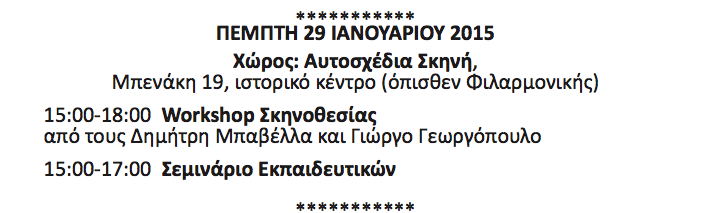 Ακολουθεί το πρόγραμμα προβολών για σήμερα: