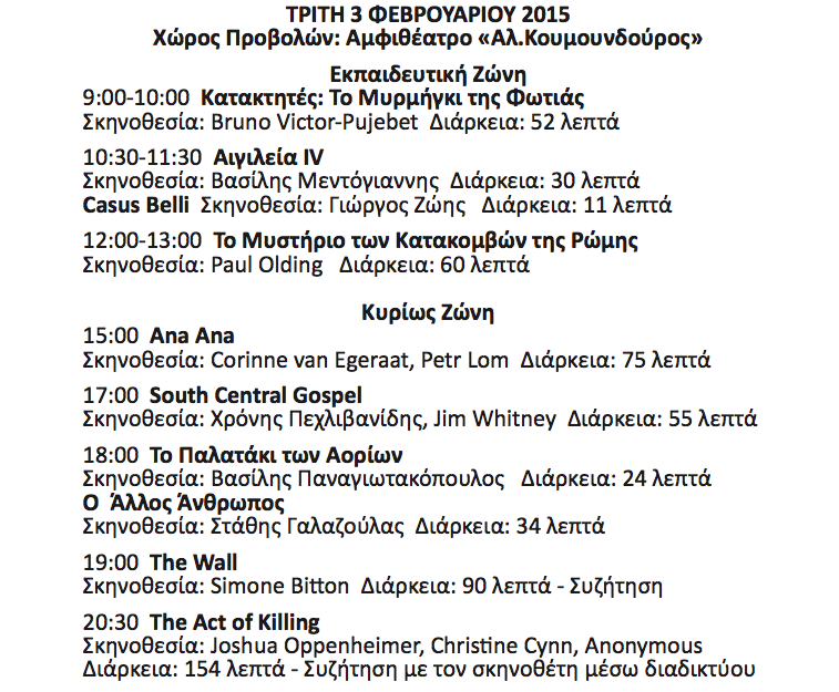 Ακολουθεί το πρόγραμμα προβολών για σήμερα: