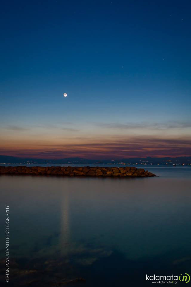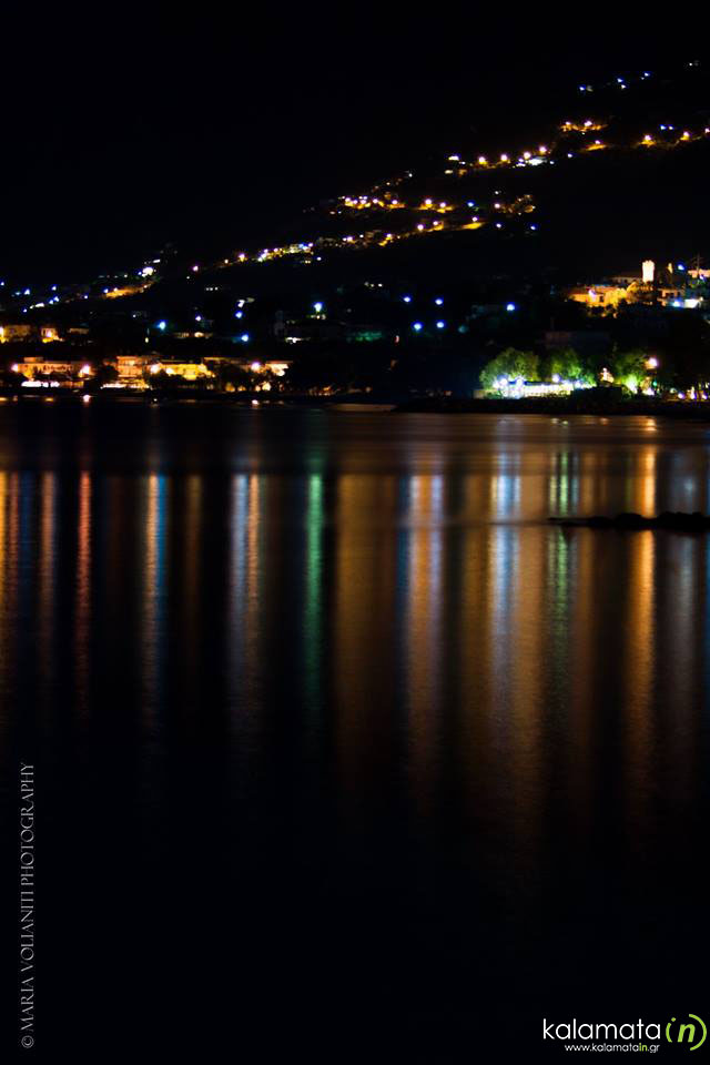 Βράδυ… με τα φώτα της πόλης να καθρεφτίζονται στα νερά του Μεσσηνιακού Κόλπου