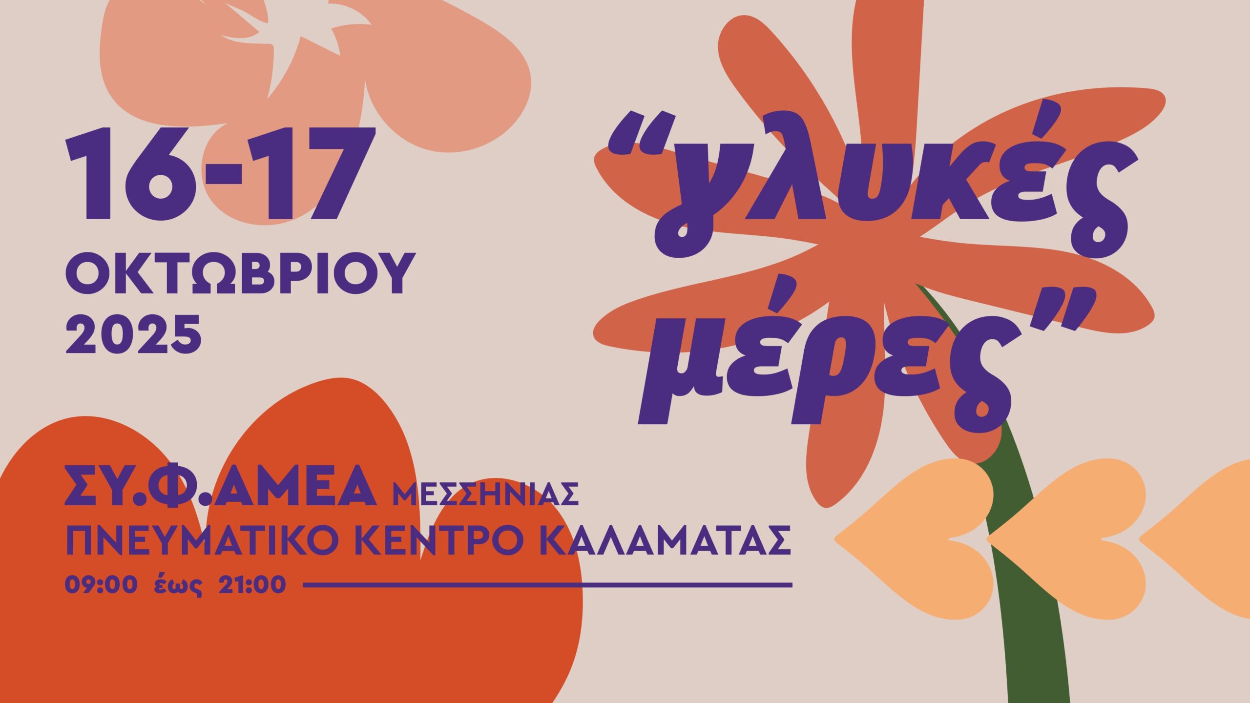 Οι «Γλυκές Μέρες» επιστρέφουν στο Πνευματικό Κέντρο Καλαμάτας για έβδομη συνεχή χρονιά, στις 16 και 17 Οκτωβρίου 2025, από 09:00 έως 21:00.
