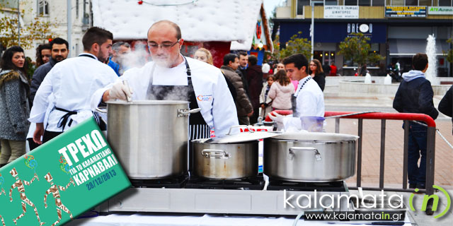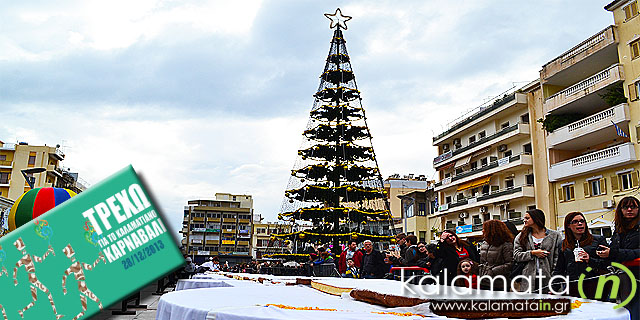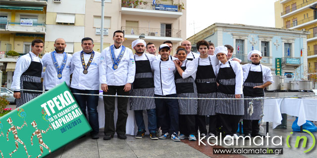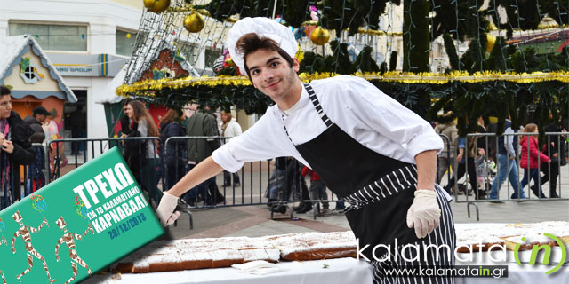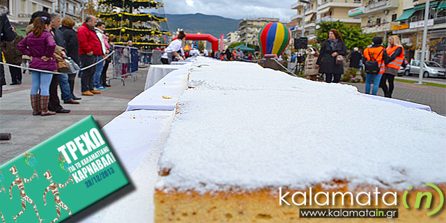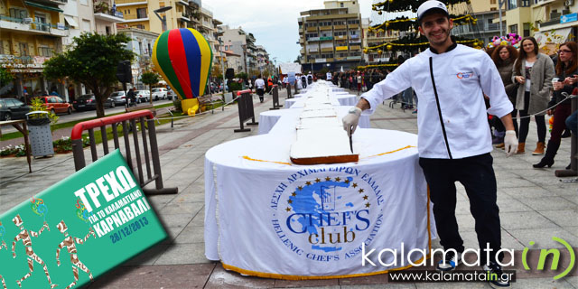 Στα πλαίσια της πρώτης προ-καρναβαλικής εκδήλωσης με θέμα «Τρέχω… για το Καλαματιανό καρναβάλι 2014…», στήθηκε και μοιράστηκε στον κόσμο κέικ μήκους 50 μέτρων στην κεντρική πλατεία της πόλης. Το πρωτότυπο αυτό γλυκό φτιάχτηκε από τους σπουδαστές του ΙΕΚ Ορίζων, υπό την επίβλεψη των καθηγητών μαγειρικής Πέτρου Βρυώνη και Κωνσταντίνου Βασιλειάδη, καθώς και σπουδαστές του ΟΑΕΔ και τη Λέσχη Αρχιμαγείρων.