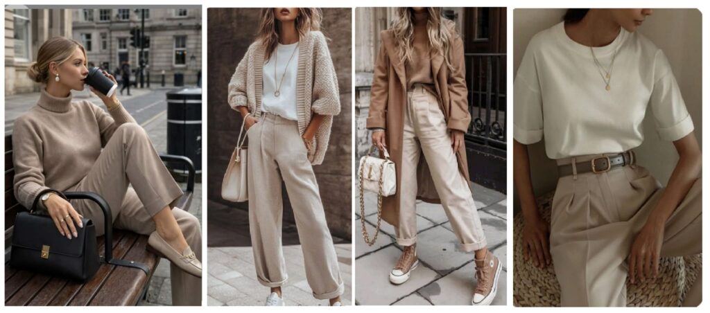 Γενικά επίλεξε ουδέτερες – γήινες αποχρώσεις όπως μπεζ, γκρι, καφέ, λευκό που κάνουν τους συνδυασμούς εύκολους και ασφαλείς για κάθε outfit.