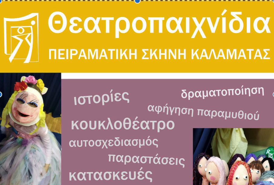 Ελάτε να παίξουμε θέατρο και κουκλοθέατρο, να ακούσουμε ιστορίες που θα μας αφηγηθούν κούκλες, να δραματοποιήσουμε ιστορίες , να κατασκευάσουμε και να εμψυχώσουμε τους δικούς μας χαρακτήρες!