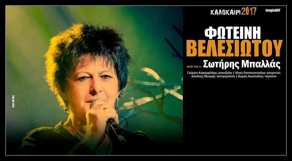 Μαζί της ο Σωτήρης Μπαλλάς. Η Φωτεινή Βελεσιώτου με πολλές sold out εμφανίσεις και μια επιτυχημένη χειμερινή σεζόν στις αποσκευές της, συνεχίζει τα μουσικά της ταξίδια ανά την Ελλάδα μαζί με τους εκλεκτούς φίλους της. Σε ένα αληθινό ταξίδι παρέα με τραγούδια που όλοι αγαπάμε, θα γίνουμε μια «αγκαλιά» ξεφεύγοντας από τα όρια ενός κλασσικού μουσικού προγράμματος.
