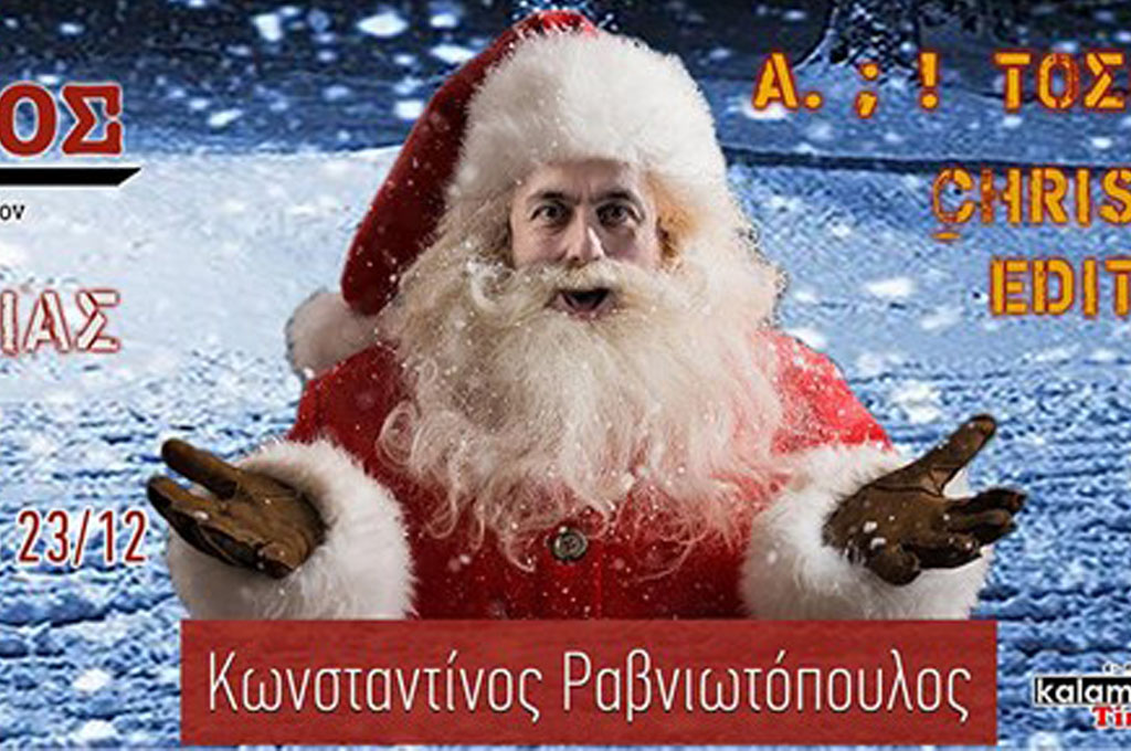 O αγαπημένος μας Κωνσταντίνος Ραβνιωτόπουλος έρχεται στην Καλαμάτα και σατιρίζει με το δικό του μοναδικό τρόπο τους πάντες και τα πάντα. Και βέβαια ως άλλος Άγιος Βασίλης μας λέει τα τα κάλαντα και σχολιάζει όλα τα παραδοσιακά μας έθιμα…α… μην του τραγουδήσετε το Last Christmas. “A τόσο καλά” … λοιπόν !